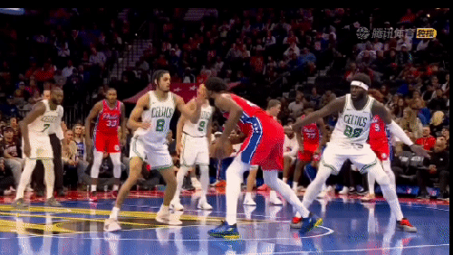 打凱爾特人,恩比德命中了一個(gè)平平無奇中距離且造成了對(duì)手犯規(guī)